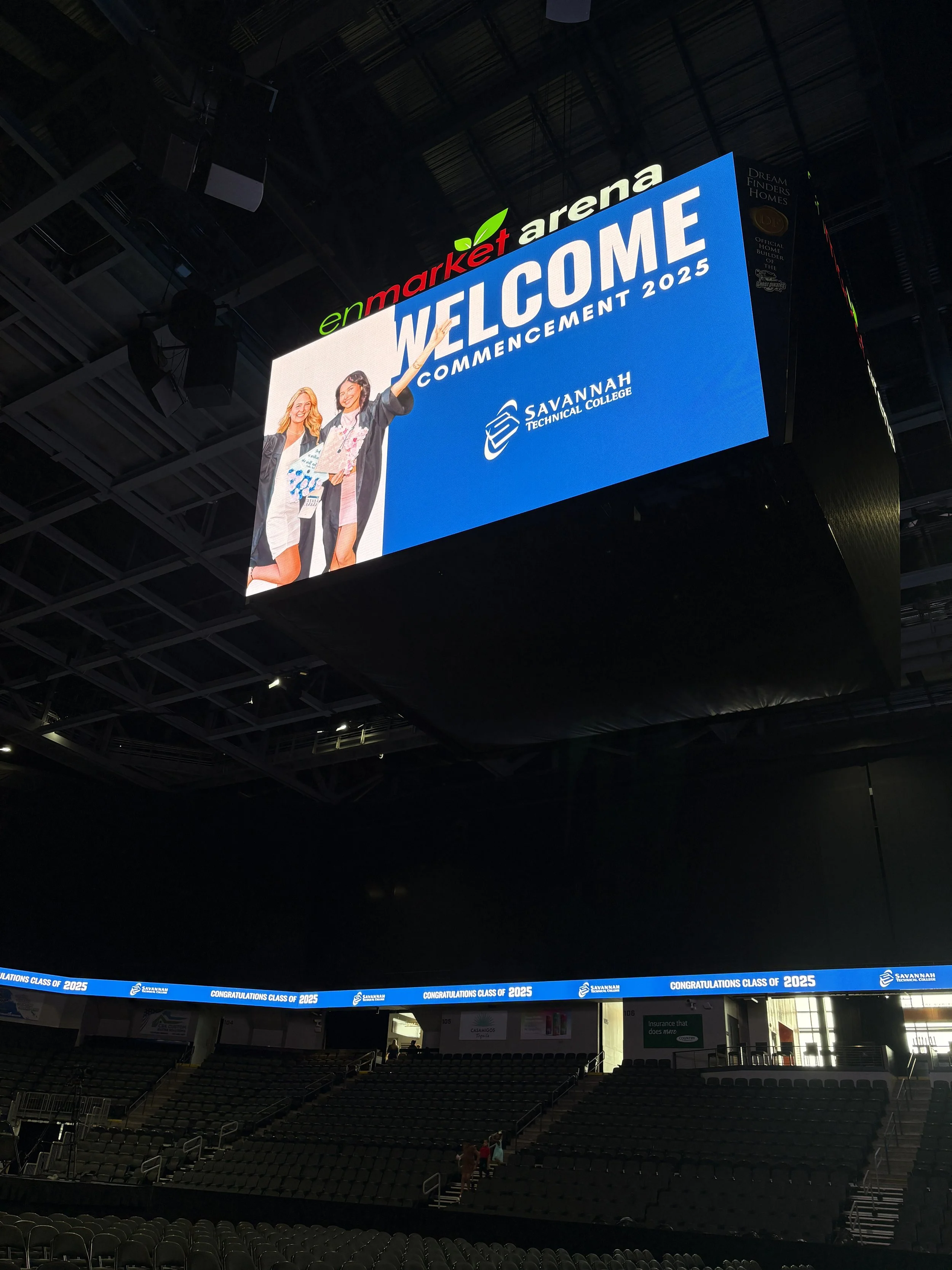 I was honored to design the visual elements for Savannah Technical College’s Commencement Ceremony, held at the EnMarket Arena in Savannah, GA. My work included Jumbotron screen slides, social media graphics, and various supporting materials to help celebrate this special milestone.